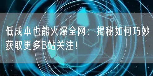 随着互联网的发展,社交媒体平台如雨后春笋般涌现。在众多社交媒体平台中,B站凭借其独特的优势吸引了众多用户的关注。想要在B站上获取更多关注,并非一定要投入大量成本。本文将为你揭示低成本也能火爆全网的方法,帮助你巧妙获取更多B站关注!